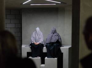 A bizarre place in Islington, part rotunda, part underground caves, not even suitable for garaging with restricted entrance. A large curve looking down onto a central arena. And from the sides emerge ‘Professional Mourners’ singing the chants of their homeland practices or playing the instruments or reciting the poems as they disperse to their allocated spot allowing us to walk around and down the spiral to stand before each group.