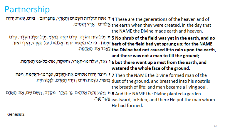 Partnerships– what is all of our role here on Earth, all of our roles? You may not have realised this: Adam and Eve are not Jewish. They are not Christian or Muslim even if our creation story has been taken and distorted. Adam and Eve and ‘merely’ Human. They are created this way so that every one of us can say the universe was created for us, us human beings, each one of us human beings. It is why we think life, especially human life, is so precious. We can break most of the rules of Torah to save life, any life. Which is why you see Israelis going in to disaster areas. That, of course, gets distorted in a wicked evil way by colonial bullies who pretend we are going to harvest organs (three day old rotted organs, really? How stupid and cruel ) or that we are doing it for show. The media pretend that we are murderers, the people that brought you all these holy commandments. I see the IG and Tweets. But it is the trolls and conspiratorial greedy people out there, the bullies and cowards that are the problem. The colonialists, not us. All humans are from Adam and Eve and therefore have the same role.