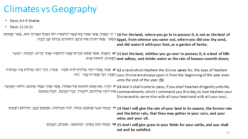 The land of Israel, promised by the Divine to the children of Jacob is not like the surrounding lands. No big rivers like the Nile, Euphrates or Tigris. Just the tiny Jordan, more a stream than a river. The entire land of Israel is the size of Wales, which is why you can’t find it easily among those Red and Green blocks of colour on the map above. The land of Israel relies on rain and dew. So for 3000 years we pray for it. For the last 2000 years we have a prayer the Amidah, said three times a day which in summer says : Causes the dew to descend and in winter says: Causes the wind to blow and the rain to fall. Our spiritual practice is, like most indigenous peoples, connected to a land, a place and our place in creation. Of course the colonialists don’t know that, which is why the Chinese can throw the Buddhist Tibetans from their sacred land and the Western Christians can throw the Aborigines from their sacred lands and the Native Peoples of the Americas from their sacred lands. The Muslims tend not to throw people from their lands, but force conversion on them instead, removing the sacredness of a specific place to make it a universal adherence.