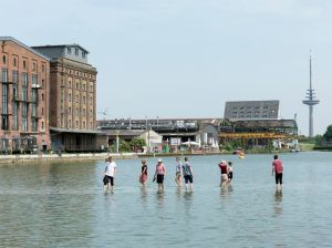 Ayse Erkmen’s submerged bridge, On Water got people crossing from one side to the other, looking as if they were walking on water. Simple and very effective.